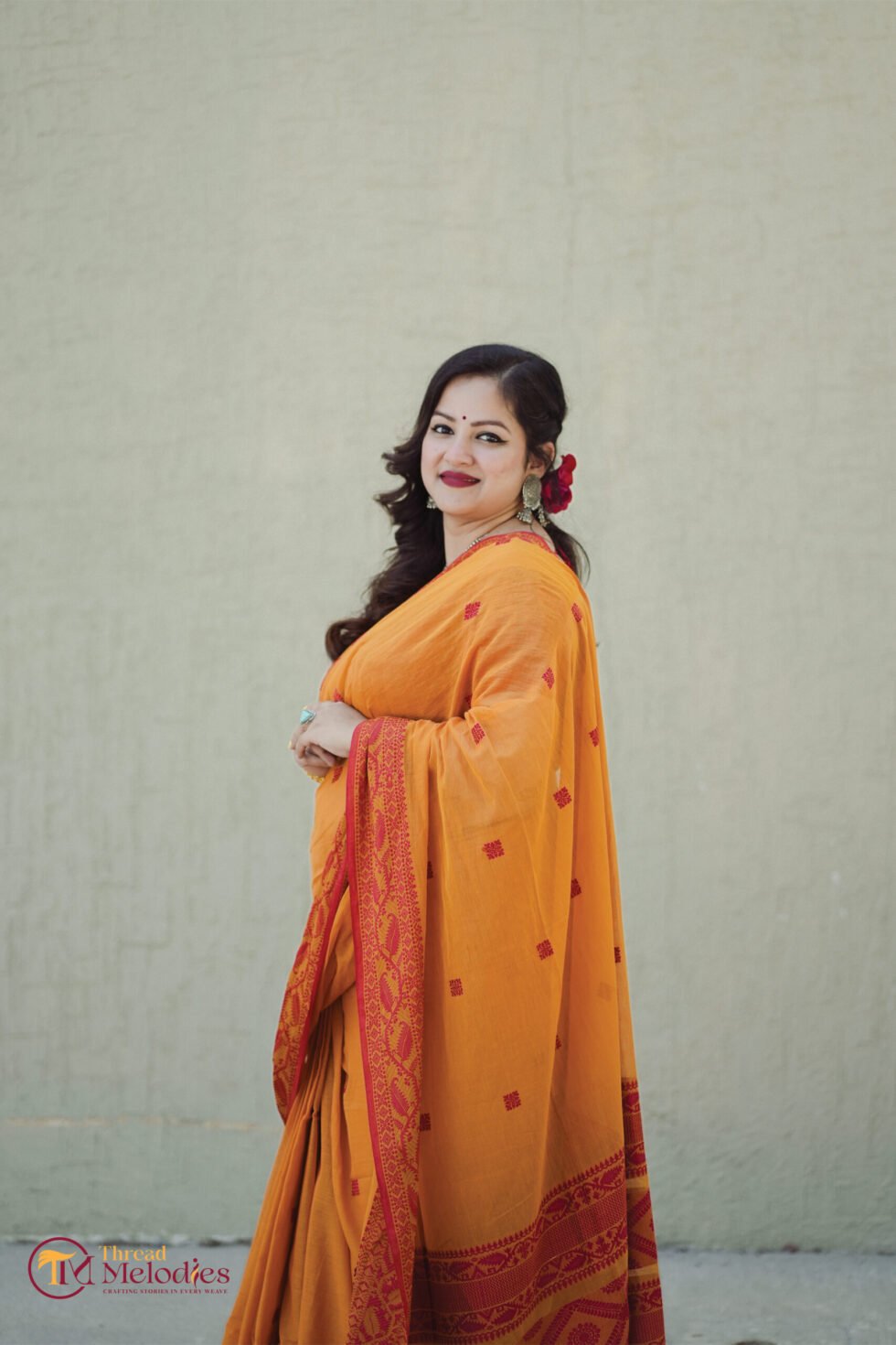 Actual color may vary slightly due to screen calibration. As this saree is handwoven using Jamdani technique, minor variations in weave, motif density, or thread placement are natural and enhance the authenticity of handcrafted textiles.