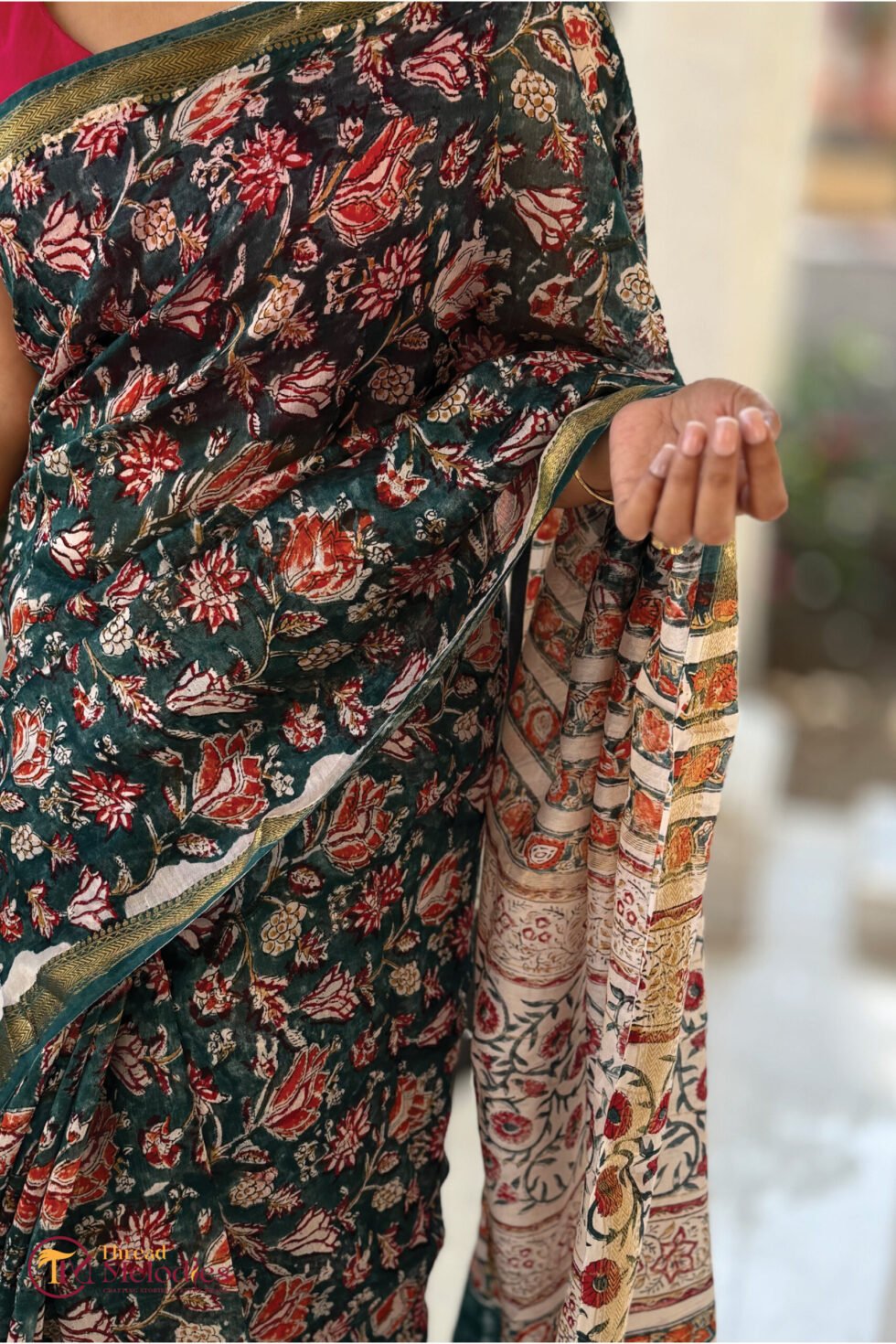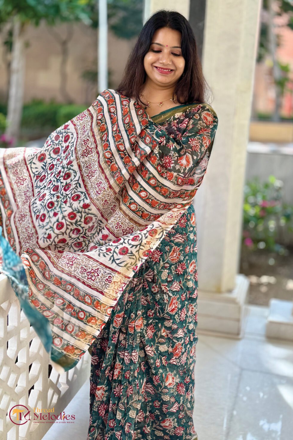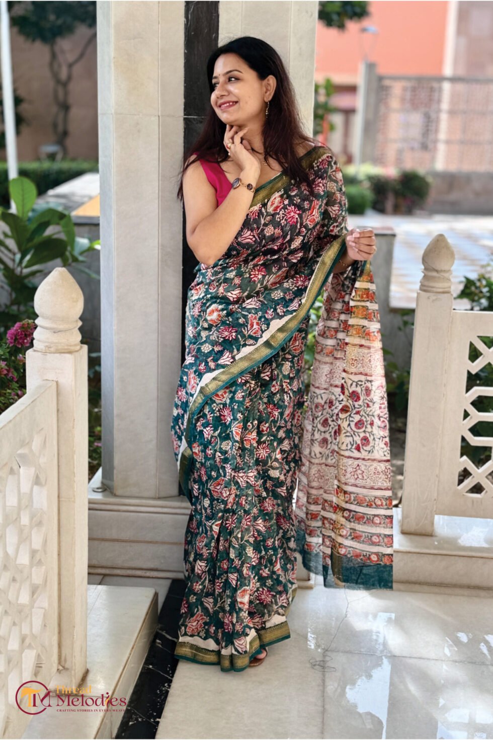BLACK FLORAL – Sanganeri block print handcrafted saree