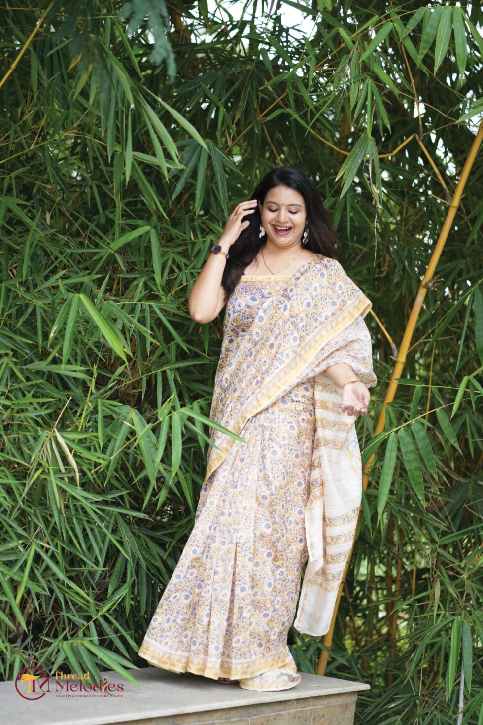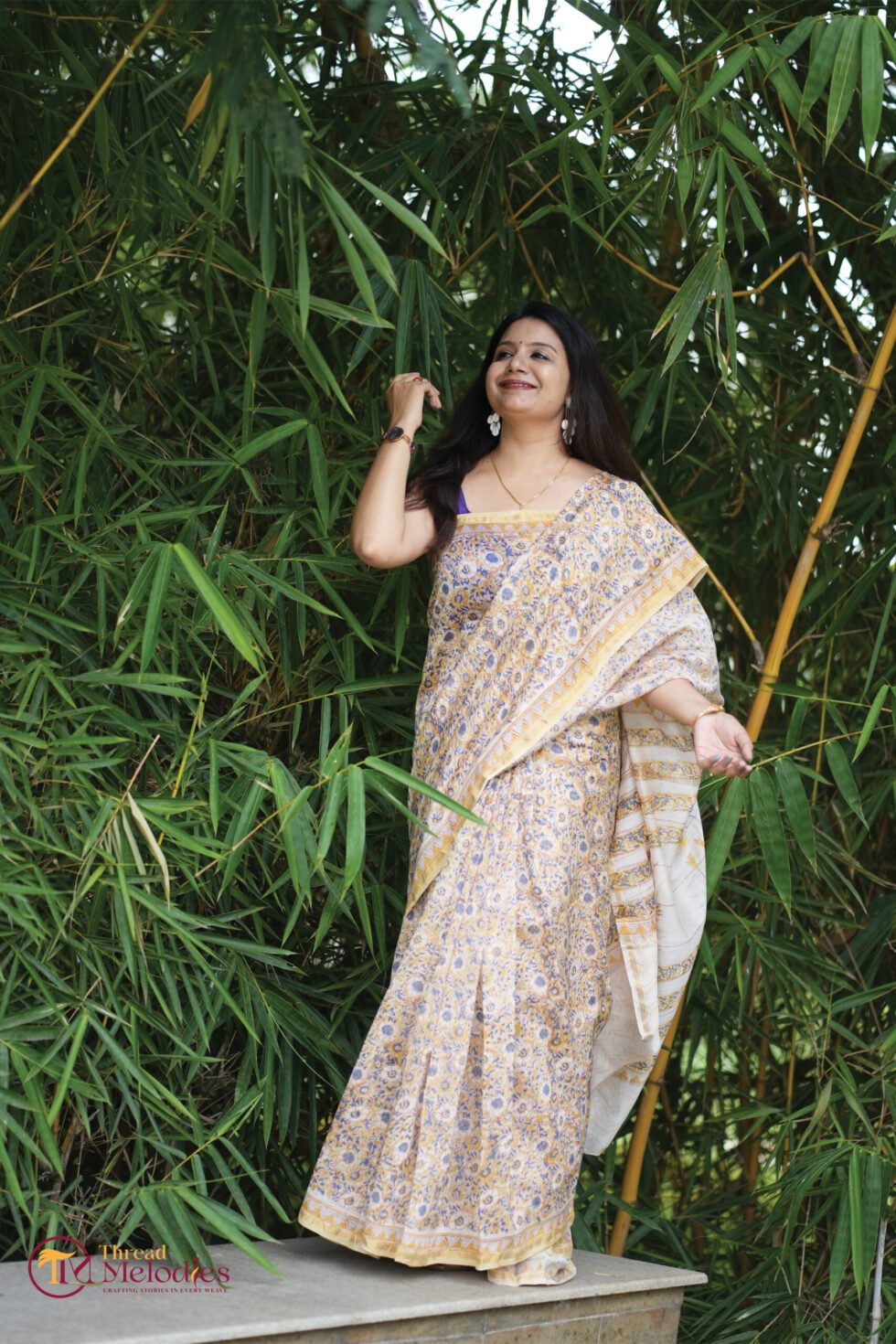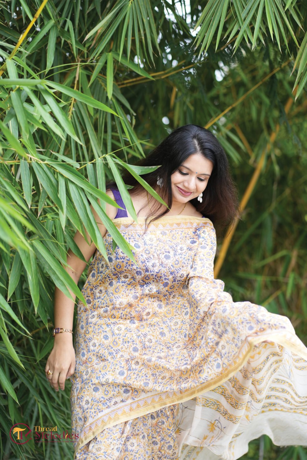 HAND BLOCK PRINTED – YELLOW AND LAVENDER SANGANERI