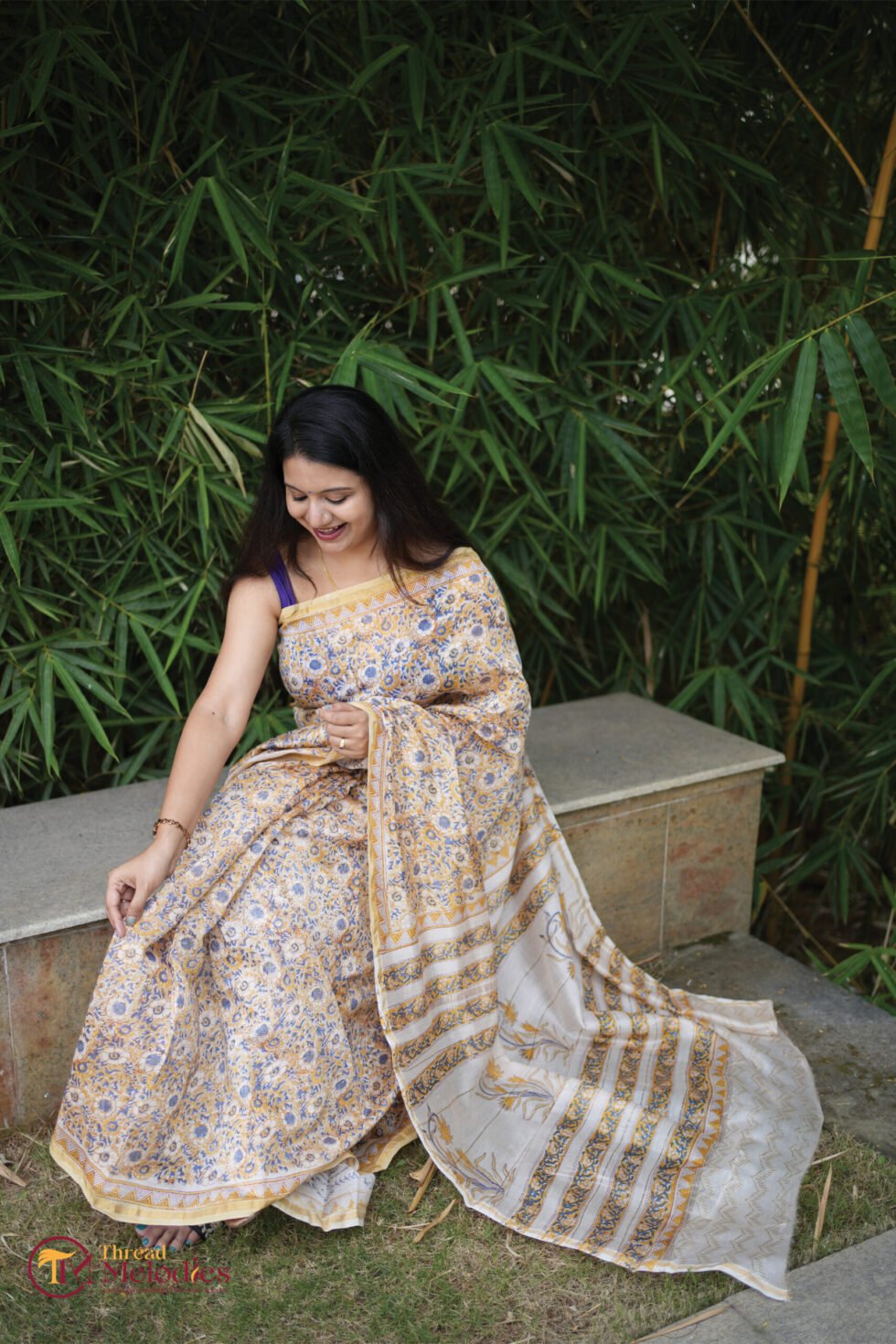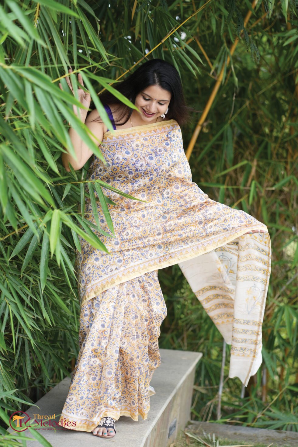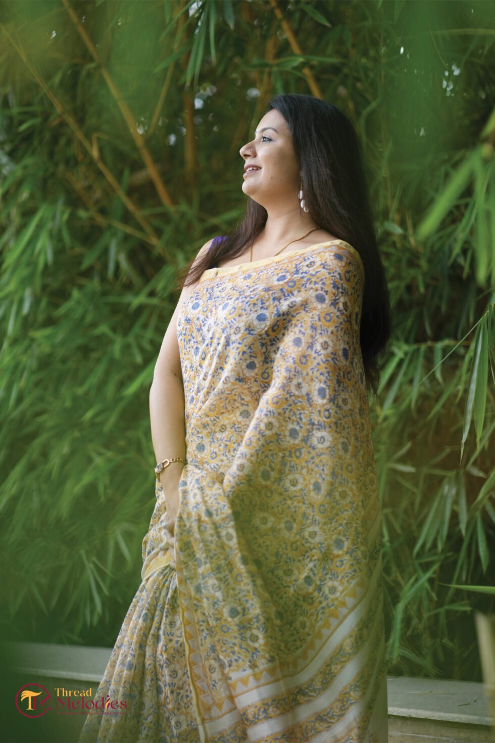 HAND BLOCK PRINTED – YELLOW AND LAVENDER SANGANERI