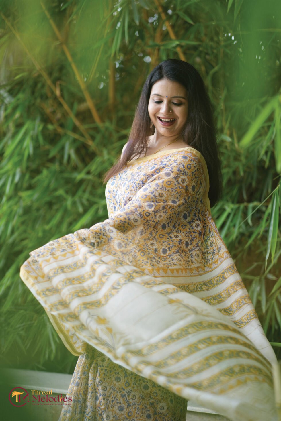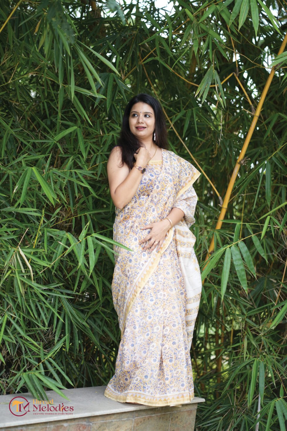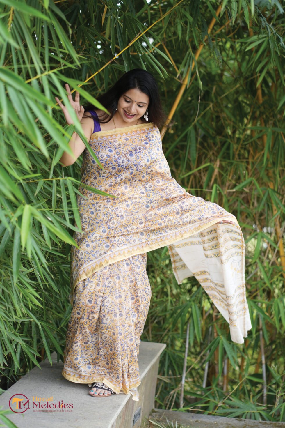 HAND BLOCK PRINTED – YELLOW AND LAVENDER SANGANERI 3,550.00
