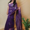 Pure tussar by tissue silk handwoven saree, crafted by skilled artisans in West Bengal using traditional Jamdani weaving techniques. Extremely lightweight and airy, the saree showcases fine Jamdani motifs intricately woven into the fabric, reflecting the delicacy and precision of this heritage craft.